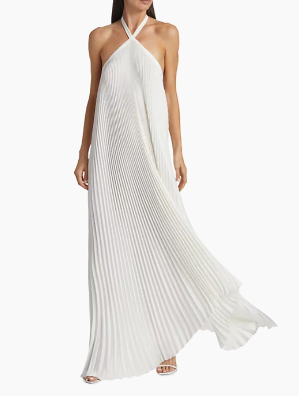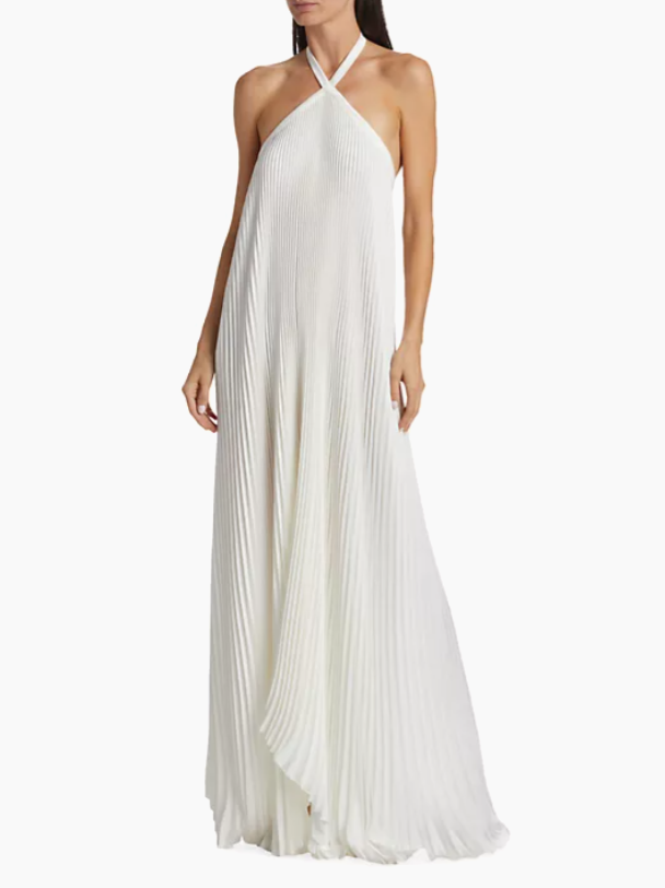 Asymmetric Halter Pleated Gown